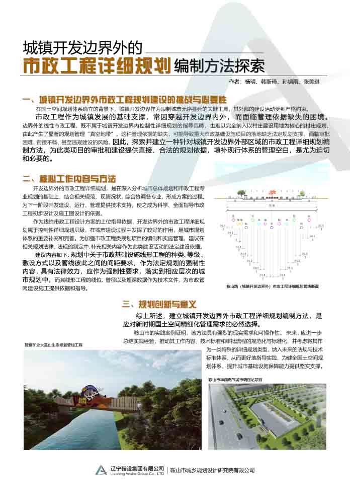 鞍設(shè)集團規(guī)劃院學(xué)術(shù)論文入選全國詳細規(guī)劃年會 -《城鎮(zhèn)開發(fā)邊界外的市政工程詳細規(guī)劃編制方法探索》